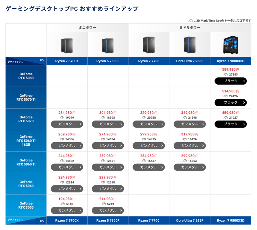 | 259,980円 | 5 225F | RTX5060Ti 8GB |
