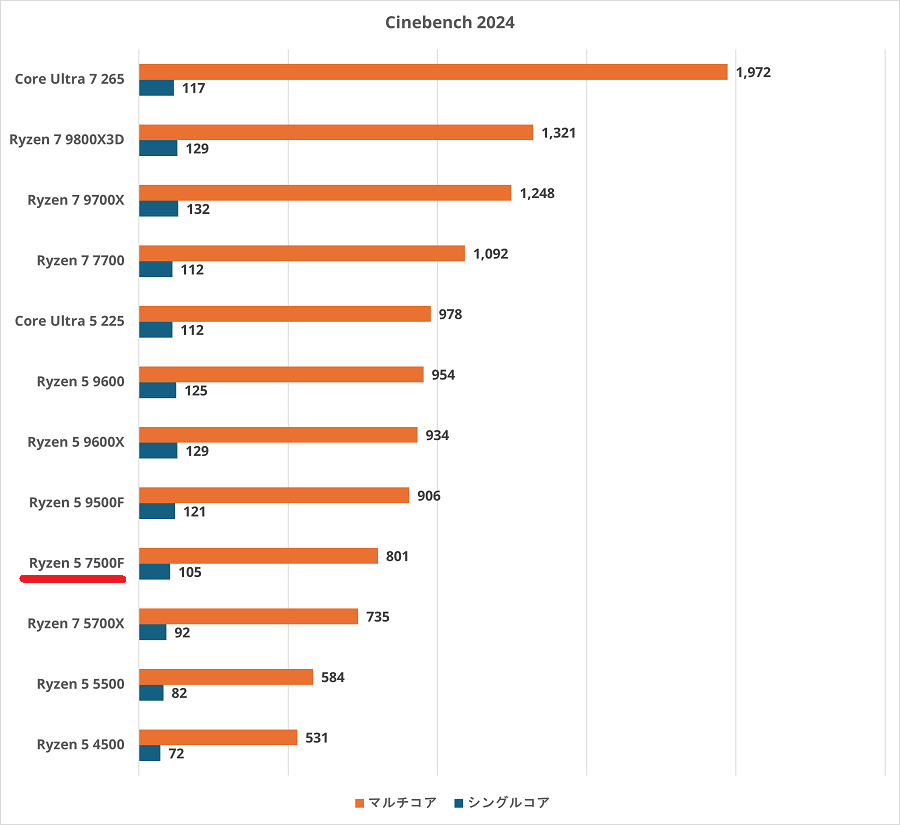 AMD Ryzen 5 7500F (6コア12スレッド) |