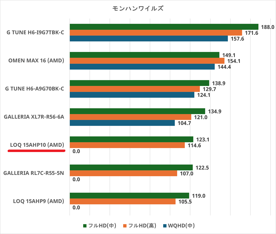 | 製品名 | フルHD(中) | フルHD(高) | WQHD(中) |