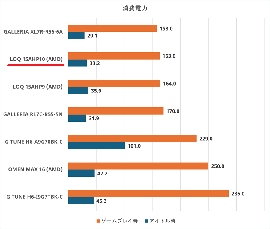 | 製品名 | ゲームプレイ時 | アイドル時 |