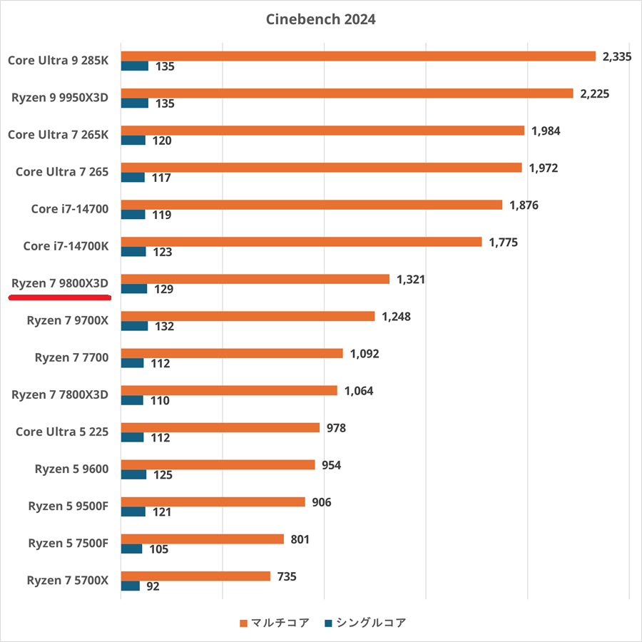 AMD Ryzen 7 9800X3D (8コア16スレッド) |